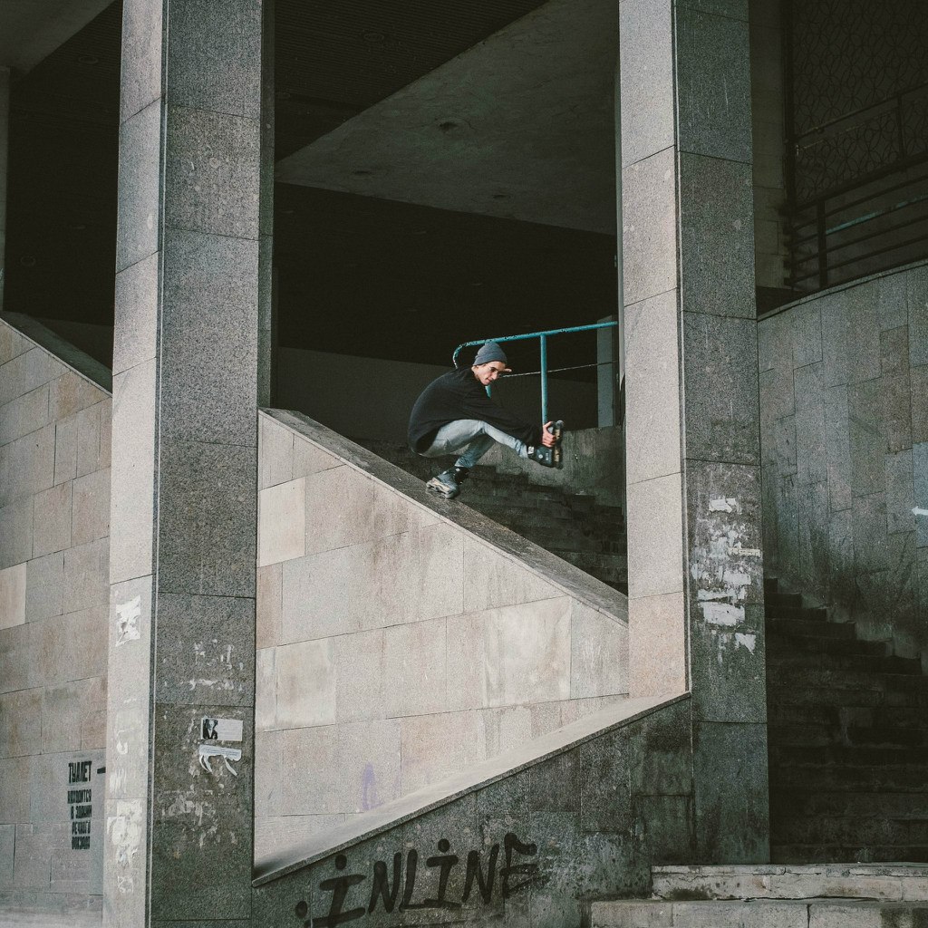 Nikita has long established himself in rollerblading society as an underground character with a distinctive style. By the way, his hometown has a strong and distinctive aggressive inline skate scene, with video premieres and rollerblading contests taking place all the time. Nikita has been riding for Them Goods in Russia for a while now, and now he represents PILLS WHEELS as well.